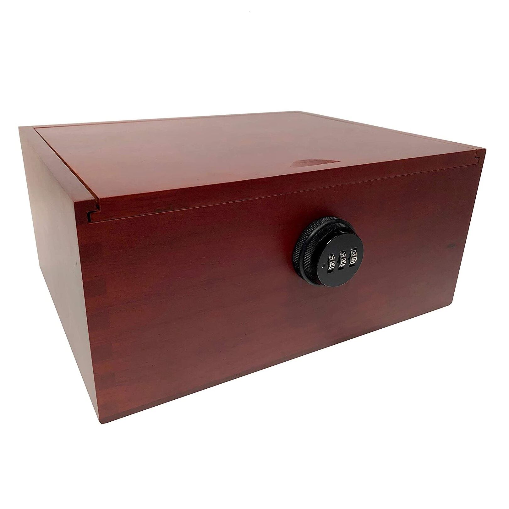木製鍵付きスタッシュボックス。ローリングトレイ付。